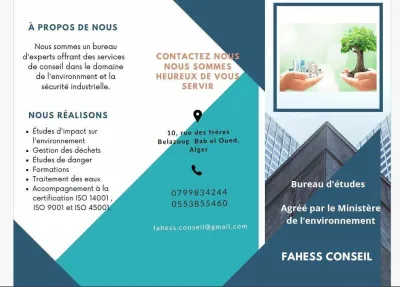 Présentation du cabinet : Notre bureau est un cabinet de comptabilité, de conseils aux entreprises et d'audit (commissariat aux comptes) implanté à Dely Ibrahim, à proximité de boi
