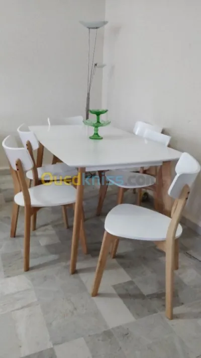 Table 2m18 sur 1m18 blanche avec 8 chaises à 65000 da