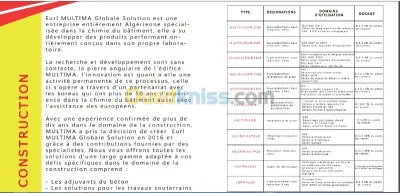 Eurl MULTIMA Globale Solution est une entreprise entièrement Algérienne spécialisée dans la chimie du bâtiment, elle a su développer des produits performant entièrement conçus dans s