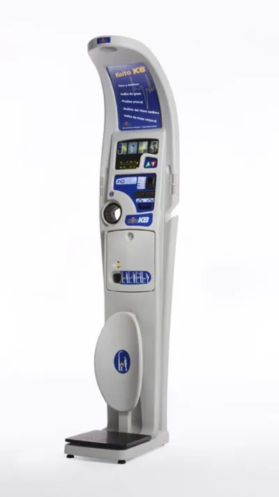 Appareil d'auto diagnostic médical [ Controle de : POID - TAILLE - PRESSION ARTERIELLE - RYTHME CARDIAQUE - MASSE DE GRAISSE - MASSE D'EAU - MASSE CORPORELLE ]