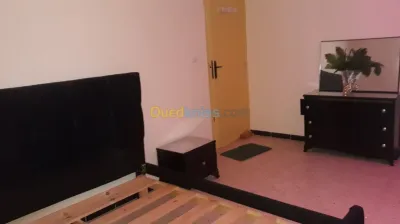 Chambre à couché se compse de : Une armoire coulissante Un lit deux places Coiffeuse Deux tables de nuit