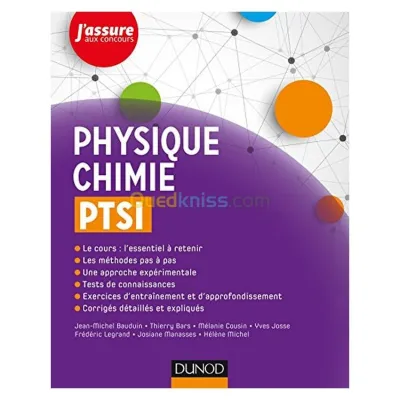 Titre : Physique-Chimie PTSI Auteur : Bauduin, Bars, Cousin, Josse Editeur : Dunod Année : 2017 Théme : Sciences De L'Ingénieur Sous-théme : Sciences Physiques ISBN : 9782100762194