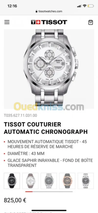 Salam alikoum Cher clients et amis nouveau arrivages chez original watches store une magnifique montre de lux suisse de la célèbre marque Tissot le modèle couturier chronographe automatiq
