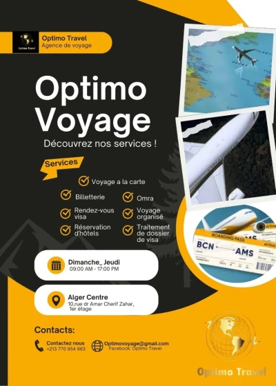 OPTIMO VOYAGES met à votre disposition ses services pour toutes vos démarches de voyage et de visas :✅ Visas Touristiques Oman Qatar saudit arabia , omra ! 🌍 Optimo Voyage vous offre