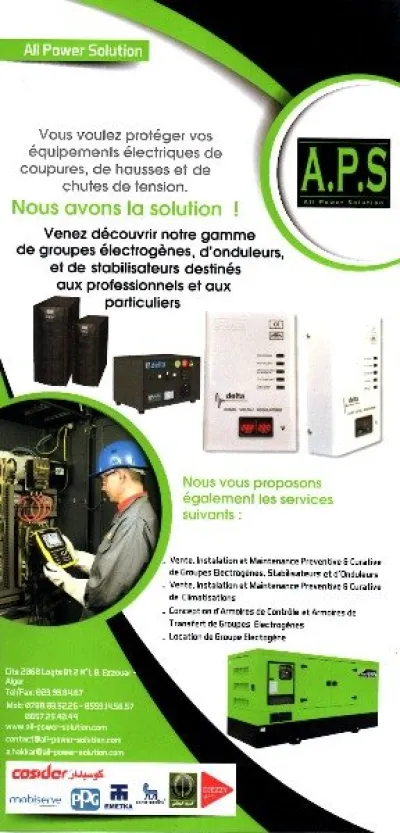 -Installation et maintenance des armoire électrique pour groupe électrogène -Installation et réparation les inverseur de source -maintenance préventive et curative des groupes électr