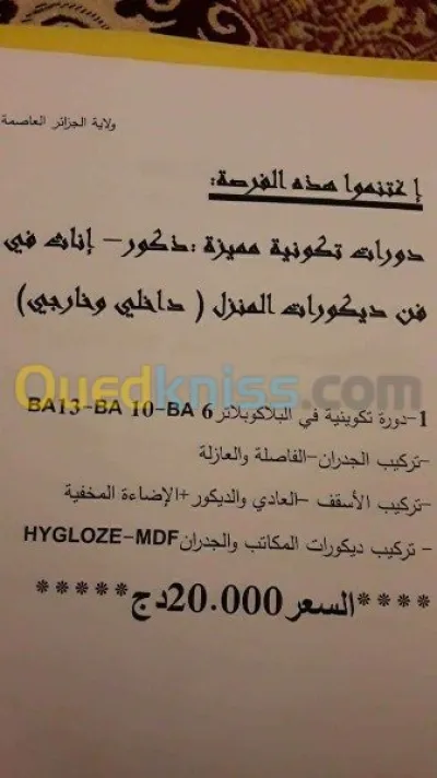 je ss un professionnel dans la decoration d interieur sol (platforme),mur , plafond ,époxy 3d, metalic, tatouage ,pour plus d information me contacter svp au