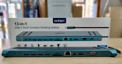 Docking station / Station d’acceuil Type C 12en1 —-> HDMI(4K)*2+VGA(2K)+RJ45(1000MB)+Type C*2+USB 3.0*3+TSD+TF+Audio ONTEN Les photos sont réelles Vendu avec garantie Livraison vers