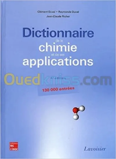Titre : Dictionnaire de la chimie et de ses applications Auteur :Clément Duval Editeur : Lavoisier Année : 2010 Théme : Sciences Sous-théme : Chimie ISBN : 9782743012816