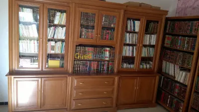 -BIBLIOTHEQUE bois hêtre massif -SALON RUSTIQUE VOLTAIRE 5 PLACES tissu ROUGE DORE