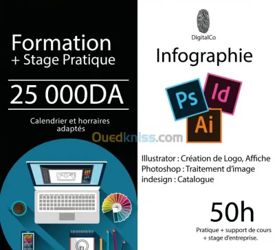 formez-vous aux compétences d'infographie ❌Places limitées ❌ Support de cours Attestation de Formation Inscrit toi au ! Lieu : Kouba Lien d'inscription :