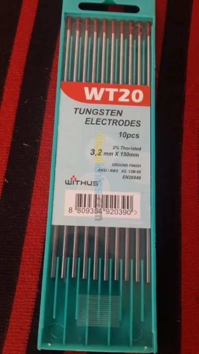 Salem tout le monde , je met en vente des electrodes en tungstun WT20, model: WITHUS 3.2 mm* 150 mm Quantité : 30 boite de 10 baquette MERCI