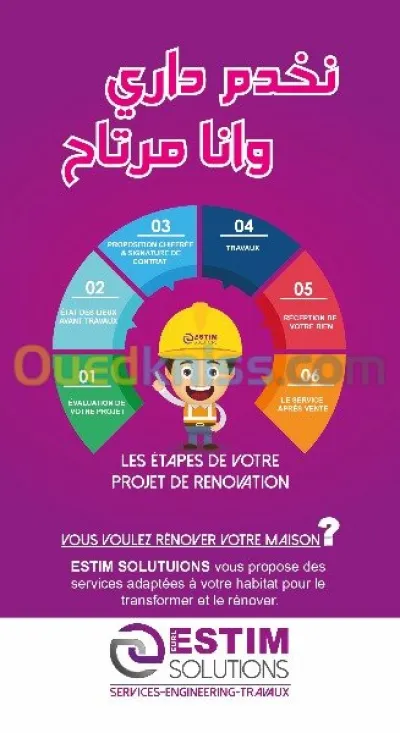 EURL ESTIM SOLUTIONS est une entreprise générale du BTPH, elle a été Créée récemment afin de répondre aux demandes du marché en matière de services, d’ingénierie, de travaux ain
