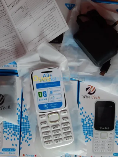 Téléphones simples marque Wise-Tech A3+ coffret avec sa boit et ses accessoires .Très bon téléphone