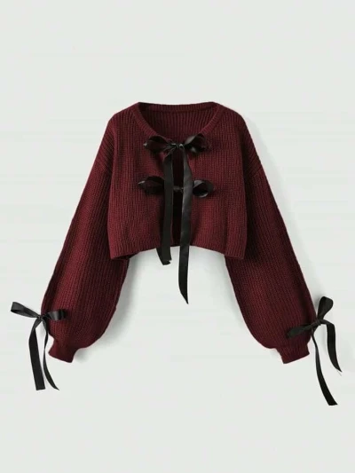 Pull court en maille avec nœuds en ruban Tailles: M Couleurs: GRIS et BORDEUX Prix : 3 000 DA Livraison disponible