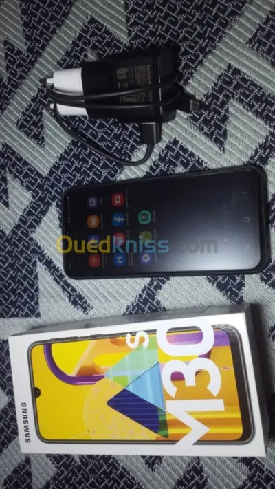 galaxy m30s en parfait état avec sa boite, 2anti choc, vitre incassable, chargeur capacité de stockage 64 gb batterie 6000 mAH caméra 48 mégapixels prix 38 000 da fixe