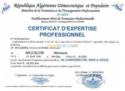 Années d’expérience : 3 À 5 Ans Métier : Education, Enseignement, Création, Design Niveau du poste : Confirmé / Expérimenté, Jeune Diplômé Lieu de travail : Dély Brahim, Daï