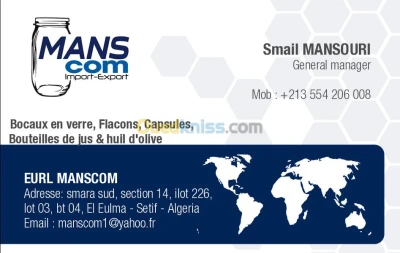 ***OFFRE DE SERVICE*** Chère Madame, cher Monsieur, Notre société, MANScom implantée à EL EULMA, est spécialisée dans le secteur de l'emballage en verre. Dans ce cadr