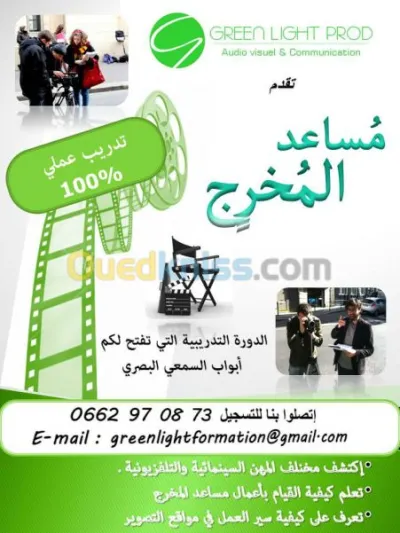 Formation + stage pratique 8 séances = 8 jours de formation = 2 mois Attestation de stage pratique en assistanat à la réalisation Notions théoriques + apprentissage pratique Ate