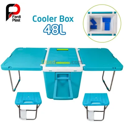 برادة متحولة 48 لتر 4في1 مع طاولة سفر مدمجة وكراسي وعجلات لنقل سهل Ferdi Glacière Portative 48L Avec Table, 2 Chaise Ideal Pour Camping