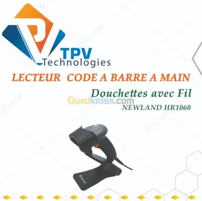 LECTEUR A MAIN NEWLAND HR2080-SF AUTOSENSE: Symbologies : 2D PDF417, QR Code, Data Matrix, Aztec, Maxicode, etc. 1DEAN-13, EAN-8, UPC-A, UPC-E, ISSN, ISBN, Codabar, Code 128, Code93, IT