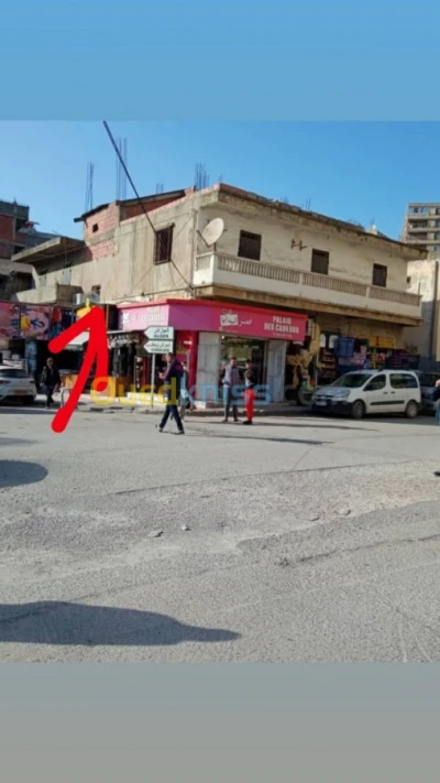 طابق تجاري للكراء في وسط مدينة الحراش (بومعطي) بجانب المركز الثقافي دحمان الحراشي مساحته 230m² في الطاب
