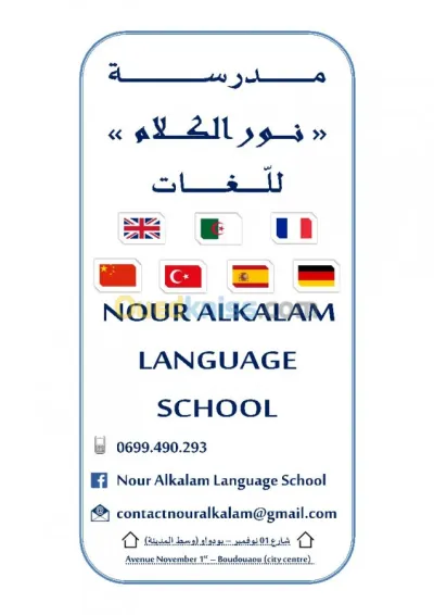 Nour Alkalam Language School vous propose des cours d'initiation aux langues suivantes : français, anglais, allemand et espagnol.