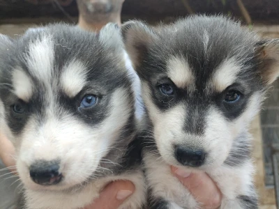 03 chiots husky avec les yeux bleus 2 femelles et 1 Mâle