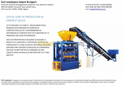 dns le cadre des cooperation entre particulier mes aussi avec les organisme ANSEJ CNAC ANDI ANGEM nous proposant une machine idéal et principalement utiliser dans la fabrication de block en