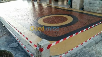الخرسانة المطبوعة (Biton imprime) -1 ديكورات عالمية مقاومة للاحتكاك ولضفط -2 تكلفة اقل مقارنة مع البلاط (karladje)