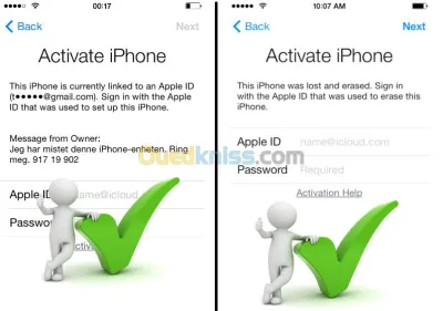 Je propose le déblocage de icloud , service rapide intsant-24 heures max Model supportée : 4 , 4s , 5 , 5c , 5s , 6 & 6+ Pour les prix : 4 & 4s : 5000da 5 & 5c : 11000da 5s : 16000d