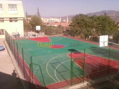 - Réalisation des infrastructures sportives. - Terrains de sport combiné en béton poreux et revêtement synthétique des salles de sport et autres