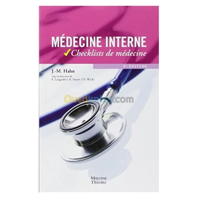 Titre : cheklist de Médecine interne 3éme édition Auteur : Johannes-Martin Hahn Editeur : Maloine Année : 2009 Théme : Médecine Et Paramédical Sous-théme : Médecine Interne ISBN : 9