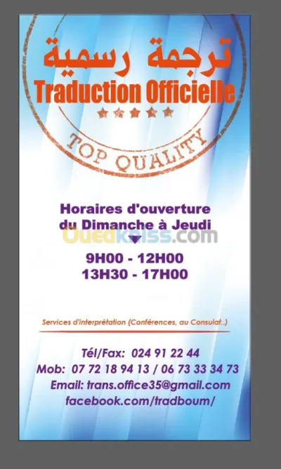 Office de Traduction Assermentee (Arabe-Français-Anglais) offre services d’interpretation et d’interpretation assermentee. Traduction pas chere, traduction prix pas chers bas., bons