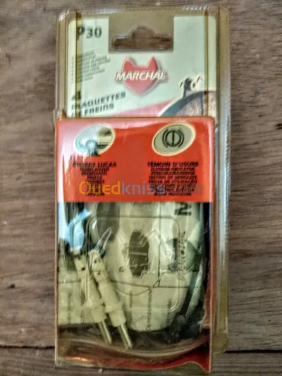 Jeu de plaquettes de frein d'origine, de la marque Marshall, ramenées de France (cabas). Produit authentique de très bonne qualité avec témoins d'usure. Ces plaquettes de montent sur l