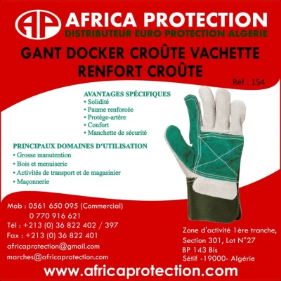 GANT DOCKER CROÛTE VACHETTE RENFORT CROÛTE VERT ''Réf : 154'' DESCRIPTIF GÉNÉRAL ET MATIÈRES • Gants dockers en croûte de vachette grise • Renfort en croûte verte sur la paume,