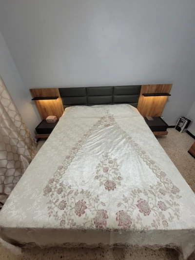 Dimensions : Armoire : L 230 × l 72 × H 215 cm Lit coffret : L 207 × l 169 × H 111 cm Commode : L 100 × l 43 × H 150 cm Table de nuit : L 60 × l 45 × H 41 cm 💰 Prix d’achat