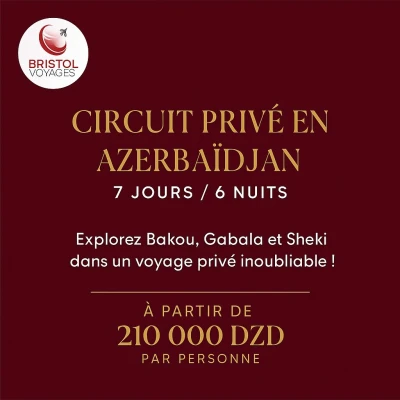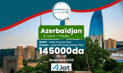 ✓ AZERBEIJAN - BAKU + GABALA ✓ 05 Nuits à BAKU / 02 Nuits à GABALA ✓ Hôtels ⭐️⭐⭐⭐ et ⭐️⭐⭐⭐⭐ ✓ à 210.000 DA ✔️ Le prix comprend : ▪️ Billet d’av