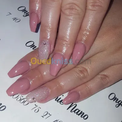 Prothésiste ongulaire : Pose capsules 2500da Remplissage 2500da Vernis semi permanent 18000da French manucure 25000da Manucure 1000da Pédicure 1000da Vernis permanent sur pied 1000d