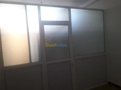 vente séparation de bureau en aluminium 1. Séparation de 3,12 m de largeur X 2,55 m de hauteur avec porte. Surface vitré (double vitrage sablé) 3,12 m de largeur X 1,45 m de hauteur.