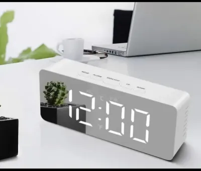 Description du produit Réveil numérique à LED avec miroir pour gros dormeurs et enfants Grand écran LED avec fonction de répétition de la température pour chambre à coucher Se rév