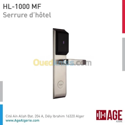 HL-1000MF Hôtel La HL1000-MF est une serrure dotée d’un lecteur Mifare lecture/écriture. Fabriquée en acier brossé, elle a un design unique d’une grande sobriété. Son lecteur R