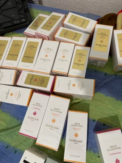 Parfums de marque GUERLIN, framboise, orange, mandarine. Eau de toilette et eau de parfum. Disponible à un bon prix. Pas sérieux s’abstenir merci.
