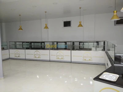 SLM martial pour 3 fromage et thé Présentoir de fromage marche 10/10 Vitrine pour boisson marche 10/10 Panineuse marche 10/10 Présentoir pour les amandes 5/10 Caisse 4 chaise et une t