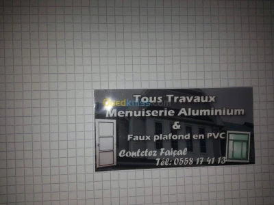 Menuiserie aluminium PVC et faux plafond PVC et rideaux et porte aluminium