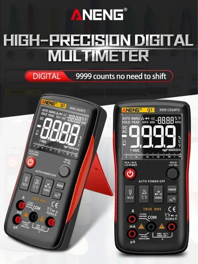ANENG Q1 Bouton Multimètre Numérique True-RMS 9999 Compte avec Graphique à Barres Analogique Ampèremètre CA/CC Courant Ohm Auto/Manuel Description du produit Caractéristiques: Marque: