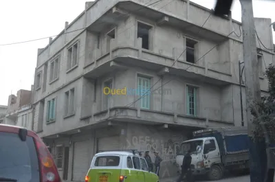 Quartier : rue mekaceb jijel centre ville Nombre de pièce : F2+F5+F55 (12 pieces) Nombre d'étage : 3 etages + REZ DE CHAUssée Nombre de garage : 2 garages Nombre de façade: 2 faça