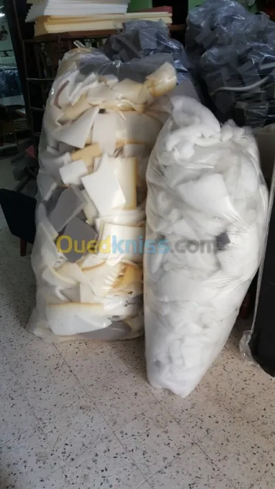 Je dispose des sacs de 8kg a 20kg de chute de mousse et fibre . Le prix du kilo est 65 da pour la mousse. 55 da pour la fibre Disponibilité 2 fois par