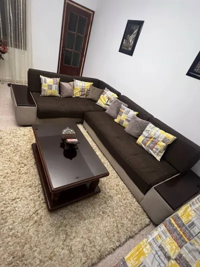 Salon L avec coffre rangement et lit rabbatable. Dimension : 200cm/90cm