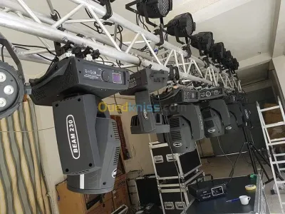 Tous type de lumière professionnel robeaux automatique, par a led, bar a led, structure, ultra violet,machine a fumée, Estrade, Ecran Géant, Scène, Estrade .