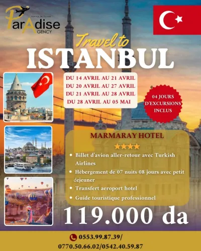 voyage organisé istanbul mois de février 2025 avec PARADISE TRAVEL 🥰✨ 👉 Meilleur plan de vol avec la compagnie Turkish Airlines✈😍 🎁04 jours d’excursions inclus ⛔ RM : t